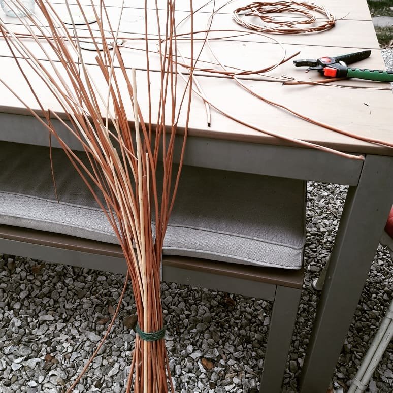 So I weaved some willow hoops, I used up all the sticks I’d soaked and ended up making three.