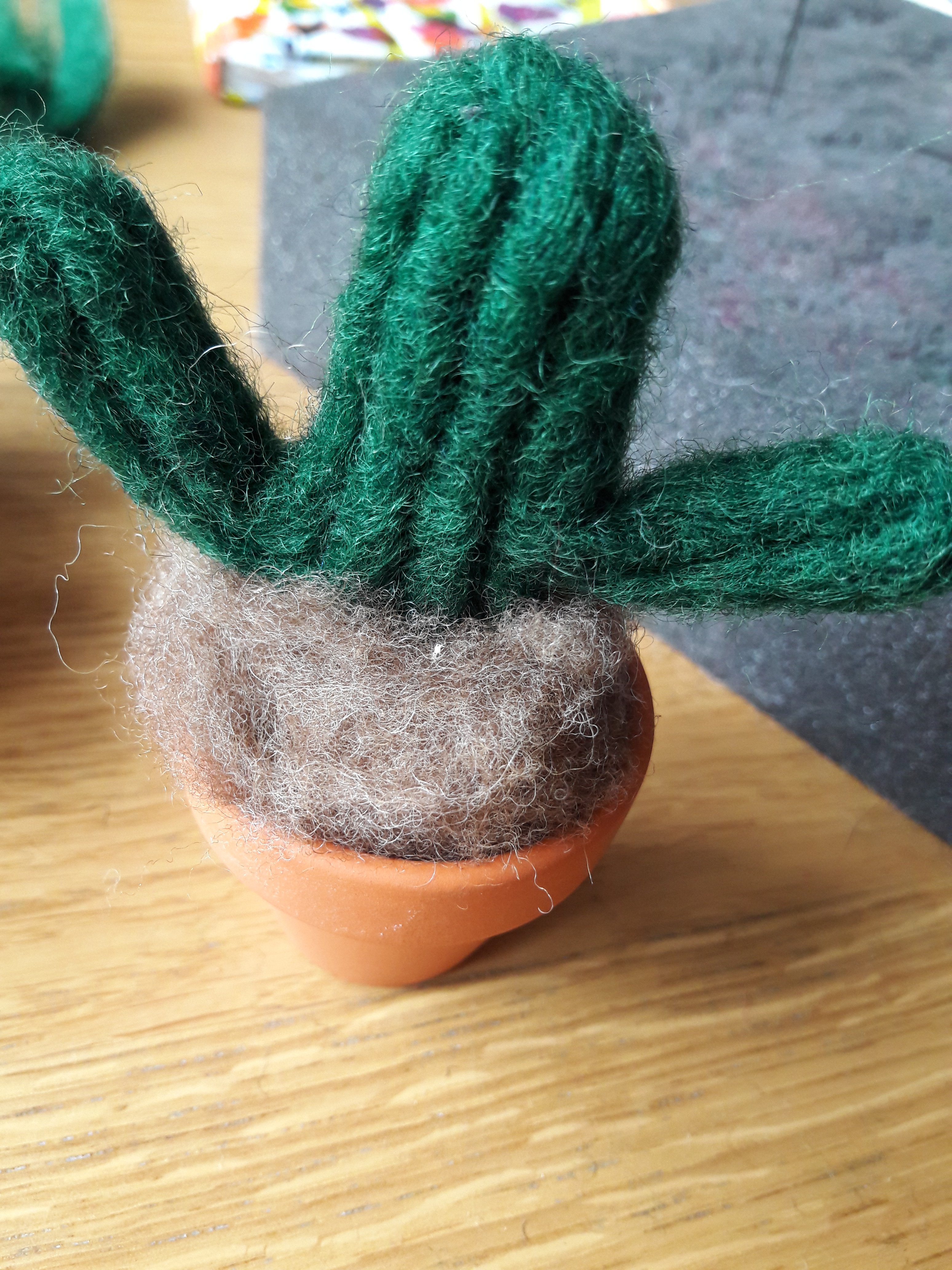 Next I collected all my green wools, then researched some photos of cacti before getting stuck in.