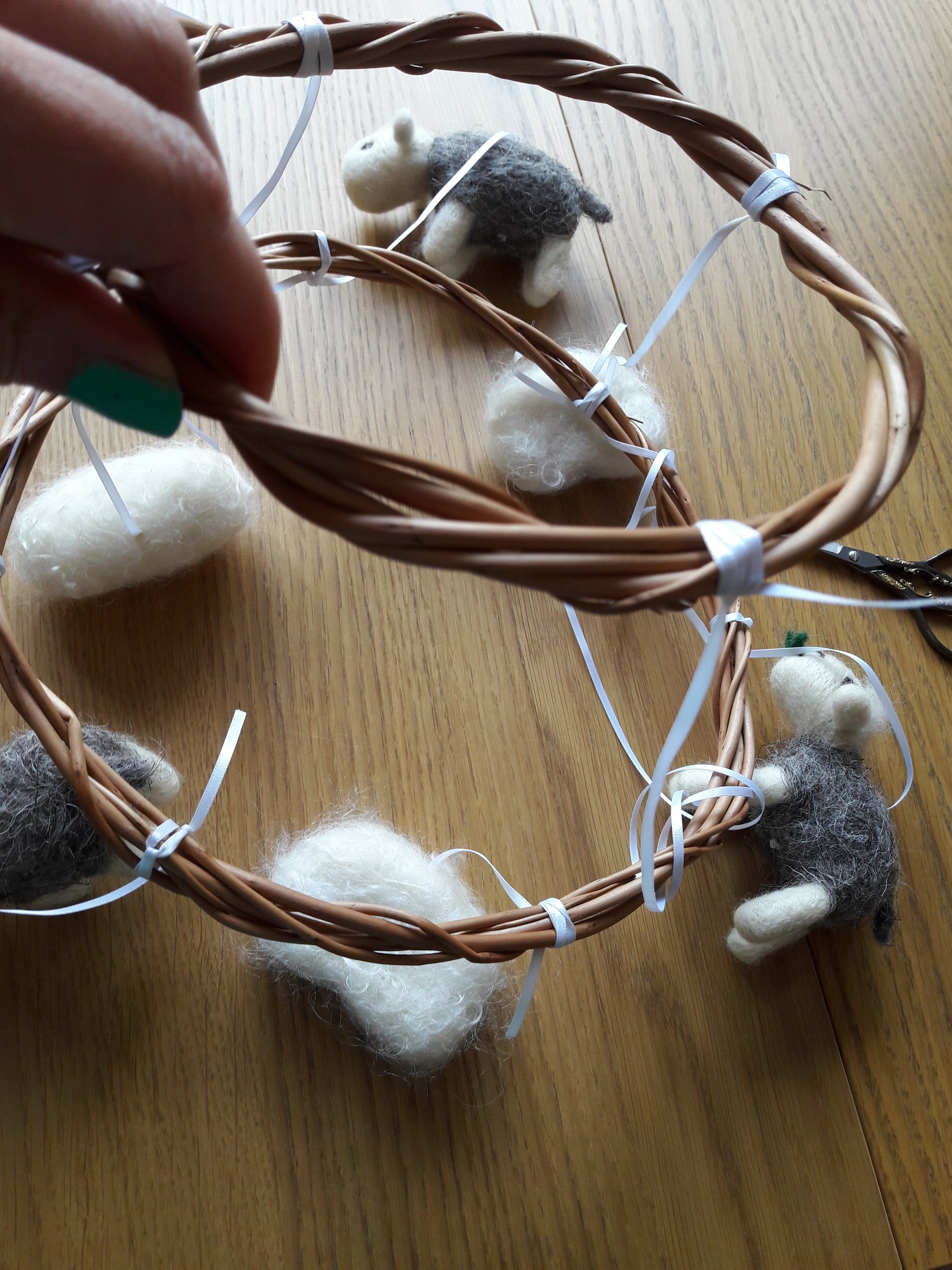It was time to start attaching the felted sheep and clouds.