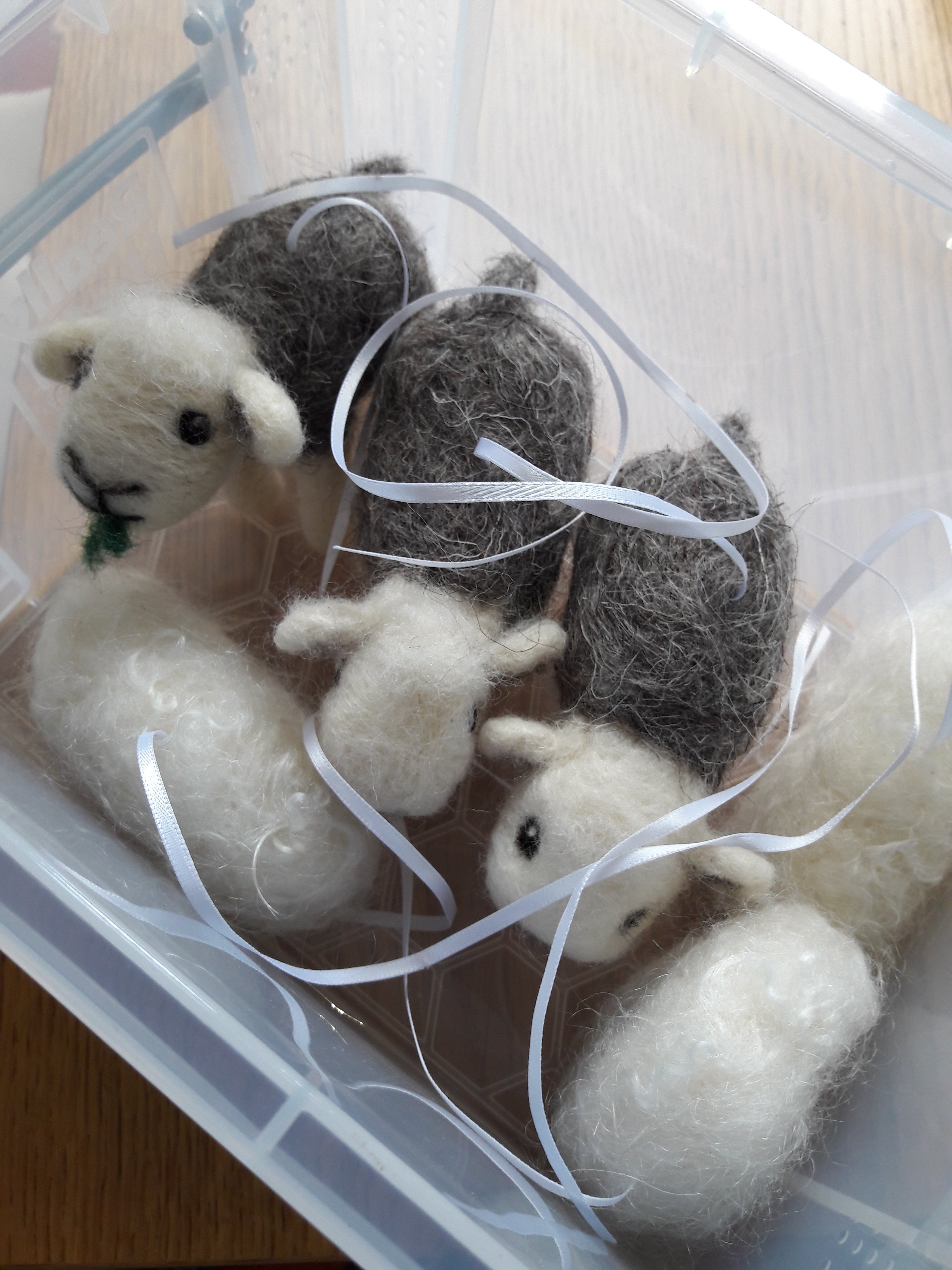 I felted the legs on and felted on extra grey Herdwick wool to cover any white bits around the joins of the legs and heads. ( I might be better putting the Herdwick wool on last next time)